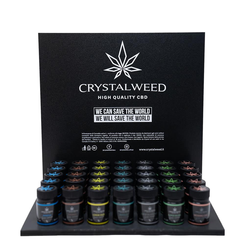 In questa pagina trovi prodotti CBD di alta qualità, ottenuti dalle piante coltivate in Italia su terreni autorizzati, senza l'utilizzo di pesticidi e altri prodotti nocivi, seguendo rigorosi protocolli GACP e GMP. Tutti i prodotti con CBD Crystalweed sono testati da laboratori indipendenti e sono disponibili in diverse forme, tra cui oli di CBD, cristalli di CBD, estratti di CBD, fiori di CBD, tisane con CBD, cosmetici con CBD. Scegli il prodotto che preferisci tra quelli disponibili qui sotto.